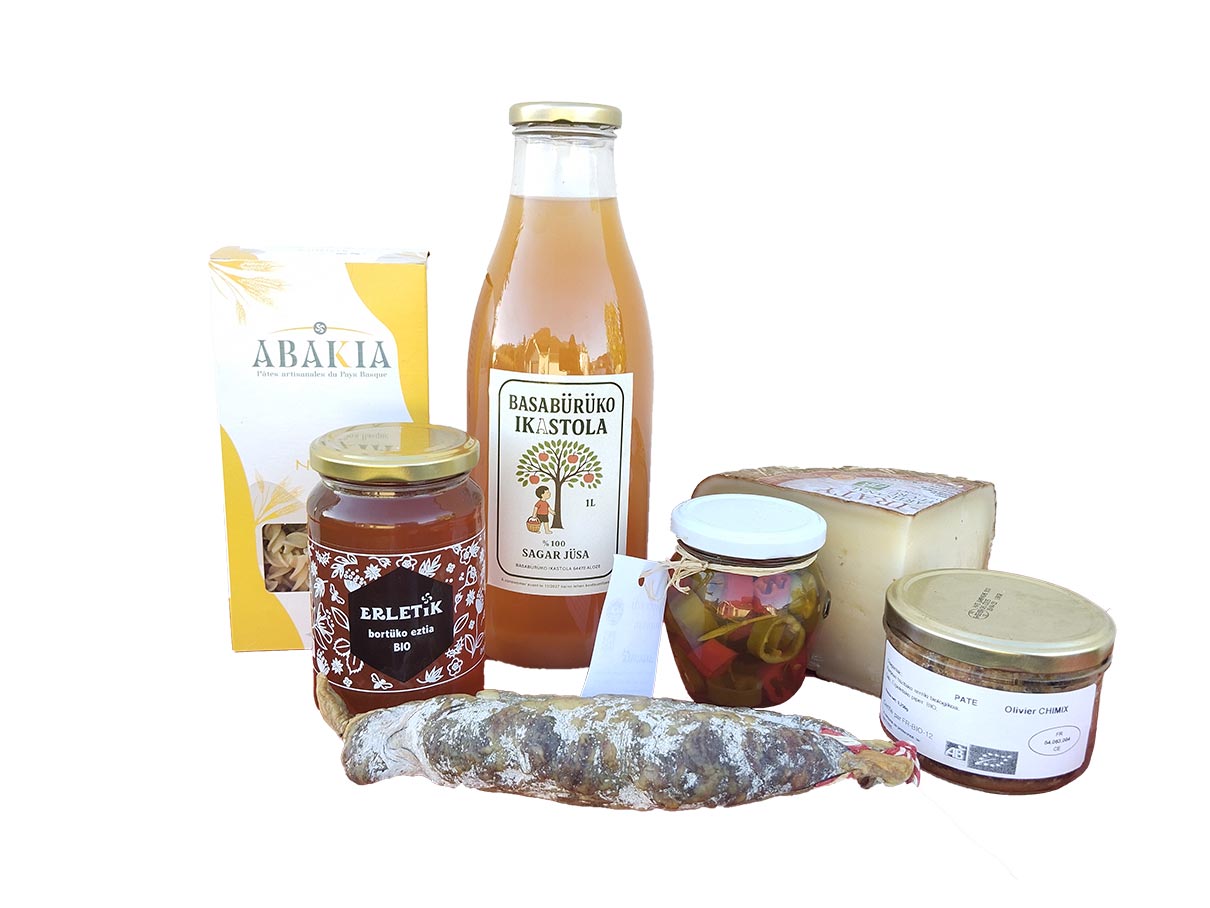 Saskiak (gazna, ahate gibel, eztia, axoa, zaltxixoi, pate, pastelak, axoa, erreximenta) bi ikastoletan dauden ekoizleeri esker osatuak dira. Lotura zuzena daukate ikastolekin : oraingo guraso eta guraso ohiak.